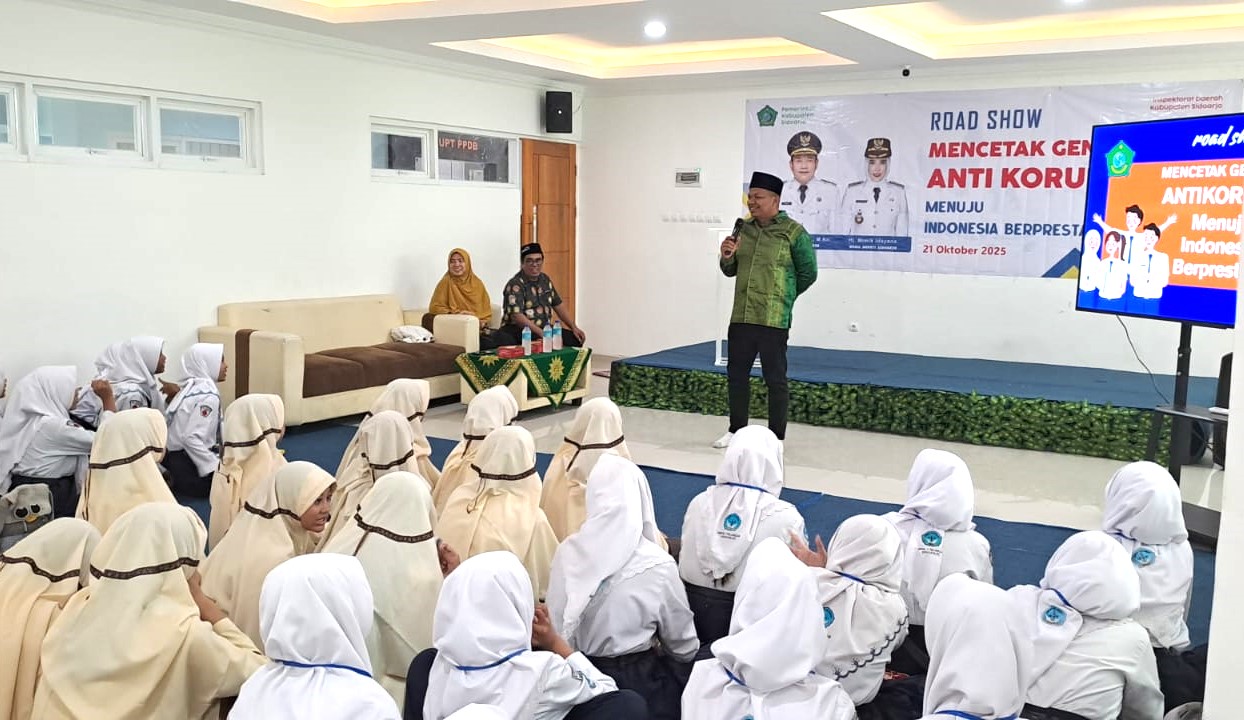 SIDOARJO (RadarJatim.id) — Komisi A DPRD Sidoarjo sangat memberikan apresiasi, dan sangat mendukung terhadap program Inspektorat Sidoarjo yang telah melakukan Road Show Cetak Generasi Anti Korupsi, menuju Indonesia Berprestasi, pada (21/10/2025) di SMP Muhammadiyah 5 Tulangan Sidoarjo.