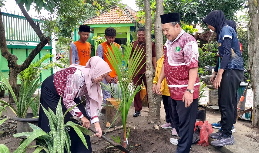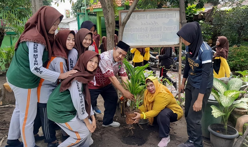 SIDOARJO (RadarJatim.id) — Komitmen terhadap peduli lingkungan, juga sebagai Sekolah Adiwiyata Nasional 2025. Bertepatan dengan peringatan Hari Gerakan Menanam Sejuta Pohon, MTs Negeri 4 Sidoarjo mengajak seluruh warga madrasah untuk menanam pohon di lingkungan internal madrasah.
