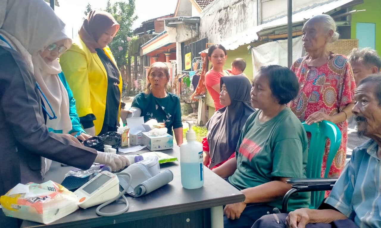 Kegiatan tersebut diisi dengan pemeriksaan kesehatan gratis, serta penyaluran bantuan kebutuhan pokok bagi para warga lanjut usia (lansia) yang selama ini hidup dengan keterbatasan akses layanan kesehatan.