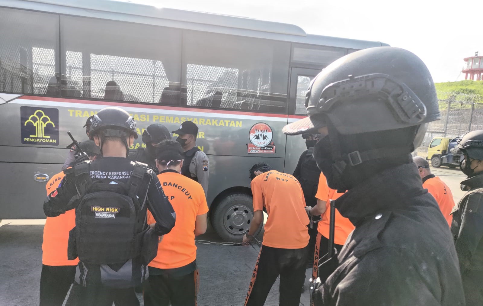 BANDUNG (RadarJatim.id) — Sebanyak 5 narapidana (napi) risiko tinggi dipindahkan dari Lembaga Pemasyarakatan (Lapas) Kelas IIA Banceuy, Bandung ke Lapas Khusus Kelas IIA Karanganyar, Nusakambangan, Senin (17/1/2022) pukul 22.30 WIB. Hal itu untuk guna mengurangi dampak gangguan keamanan dan ketertiban (kamtib) di Lapas Banceuy.