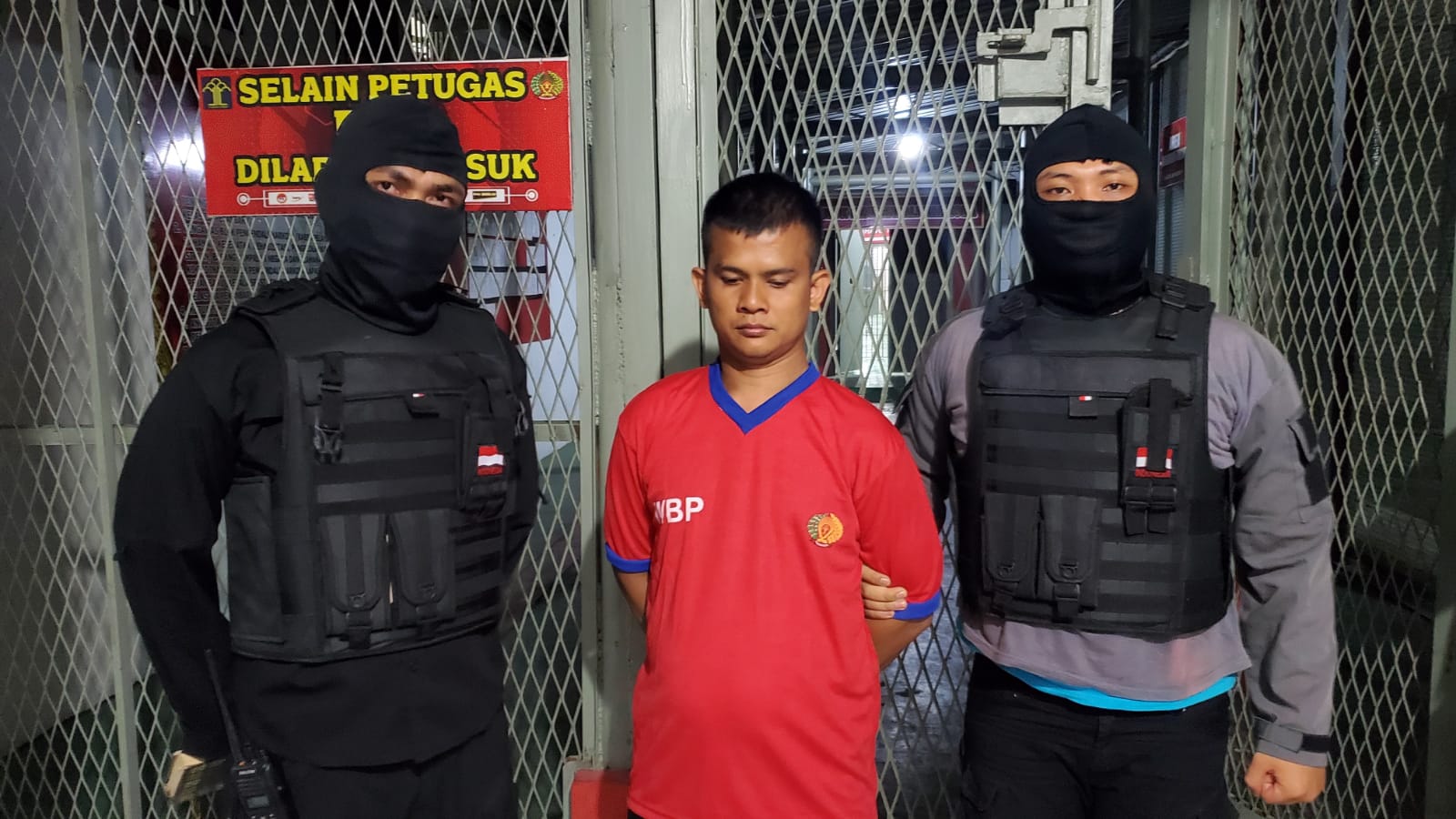 Terduga otak pembakaran Ka KPLP Pekanvaru saat digelandang petugas. (Foto: ist)