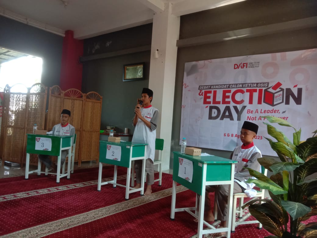 Ustadz Lukman Setiawan, S.Pd. sebagai Waka Kesiswaan SMP DAFI berpesan bahwa ELECTION DAY merupakan kegiatan rutin tahunan untuk memilih ketua OSIS, seluruh santri menggunakan momen ini sebagai wujud demokrasi siswa.