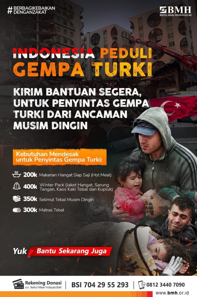 Oleh karenanya Laznas BMH sebagai Lembaga Amil Zakat Nasional yang bergerak menghimpun dana zakat, infaq , sedekah serta dana non halal dari masyarakat dermawan dan aghniya juga konsen terhadap kebencanaan. Kuhusus nya peduli terhadap saudara muslim Turkey yang mengalami gempa.