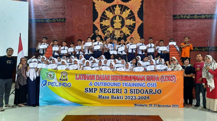 SIDOARJO (RadarJatim.id) — Puluhan siswa telah mengikuti Latihan Dasar Kepemimpinan Siswa (LDKS) SMP Negeri 3 Sidoarjo (Spentigda) di Kampung Coklat Wisata Desa Bumi Mulyo Jati, Dlanggu, Mojokerto, Senin-Selasa (20-21/11/23).