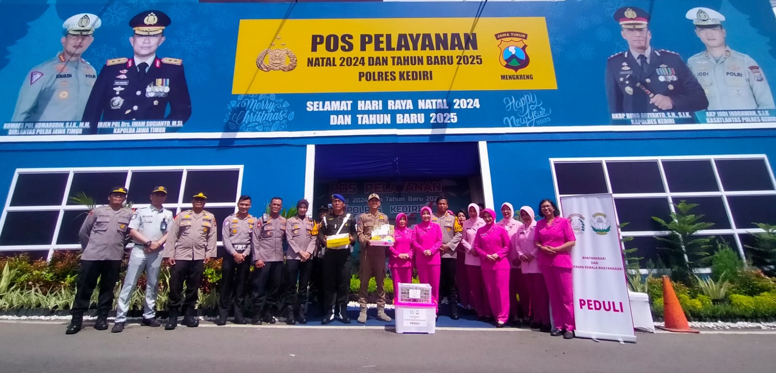 KEDIRI (RadarJatim.id) – Kapolres Kediri, AKBP Bimo Ariyanto, bersama para perwira Polres Kediri meninjau salah satu pos yang berpotensi rawan kemacetan di wilayah Kabupaten Kediri, Senin (23/12/2024). Pos dimaksud adalah Simpang tiga Mengkreng yang berada di Kecamatan Purwoasri, Kabupaten Kediri.