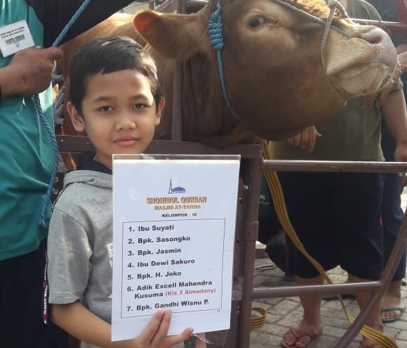 Inilah yang dilakukan dua siswa Sekolah Dasar Alam Muhammadiyah Kedanyang (SD Almadany) Kec. Kebomas, Gresik: Excel Mahendra Kusuma dan Muhammad Aditya Ludvik Dias. Keduanya masih imut, baru naik kelas 2. Namun, keinginan kuat dan luhur untuk bisa ikut berkurban sendiri, sangat luar biasa. Dan, Selasa (20/7/2021) keduanya merasa plong dan bergembira karena niat untuk ikut membeli hewan kurban sebagaimana dilakukan orang tuanya dan kaum Muslimin pada umumnya, terkabul.