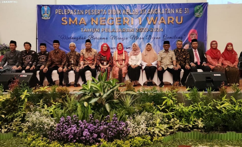 Prosesi pelepasan dengan tema Melangkah Bersama Menuju Masa Depan Gemilang Berjalan Dengan Lancar dan Sukses tersebut. Surat Keputusan Kelulusannya dibacakan oleh Wakil Kepala Sekolah Bagian Kurikulum Asmali, S. Kom, tahun ini SMA Negeri 1 Waru telah meluluskan 394 siswa dari program IPA, IPS, dan IBB.