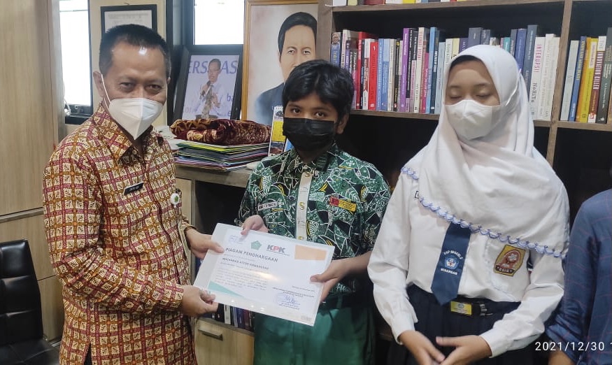 SIDOARJO (Radar Jatim.id) Mochamad Attor Firmansyah siswa SMPN 1 Taman Sidoarjo yang mengambil tema ‘Generasi Milenial Melawan Korupsi’ menjadi juara Terfavorit dalam Lomba Pantun Lawan Korupsi yang digelar Dinas Pendidikan Sidoarjo bersama AJLK KPK (Akademi Jurnalistik Lawan Korupsi Komisi Pemberantasan Lawan Korupsi) 2021.