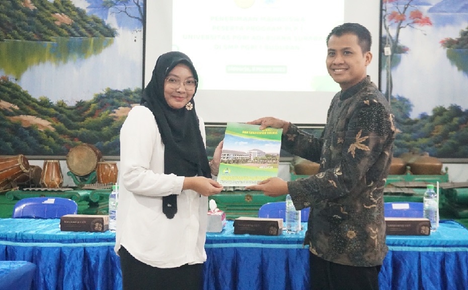 Prosesi serah terimanya dilakukan oleh Dosen Pembimbing Lapangan, Muhammad Syukron Maftuh, S.Pd, M.Pd kepada Kepala SMP PGRI 1 Buduran, Indrajayanti Ratnaningsih, S.Si, M.Pd di Aula sekolah, Rabu (8/3/2023) pagi.