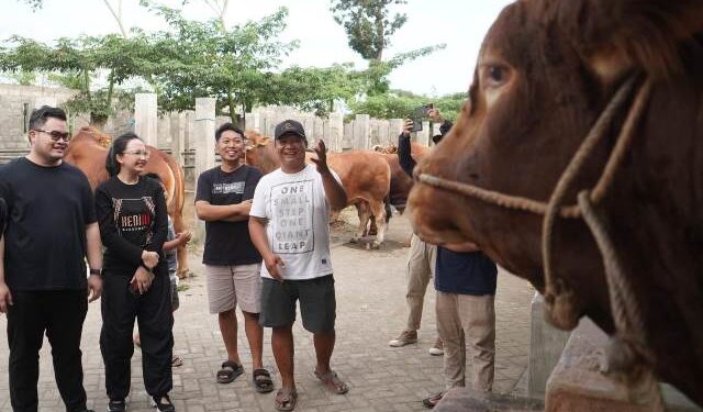 Didampingi pemilik peternakan, baik Mas Dhito maupun Mbak Cicha nampak memilih sapi-sapi jumbo yang ada di IBS Farm Plosoklaten itu, Minggu (2/6/2024) sore.