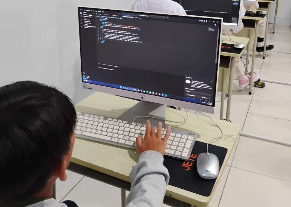 Kegiatan coding plugged berlangsung di laboratorium komputer SD SAIM, Jumat (24/10). Setiap siswa belajar mengenal struktur dasar HTML seperti <html>, <head>, <body>, serta tag-tag penting untuk menampilkan teks dan gambar di halaman web.