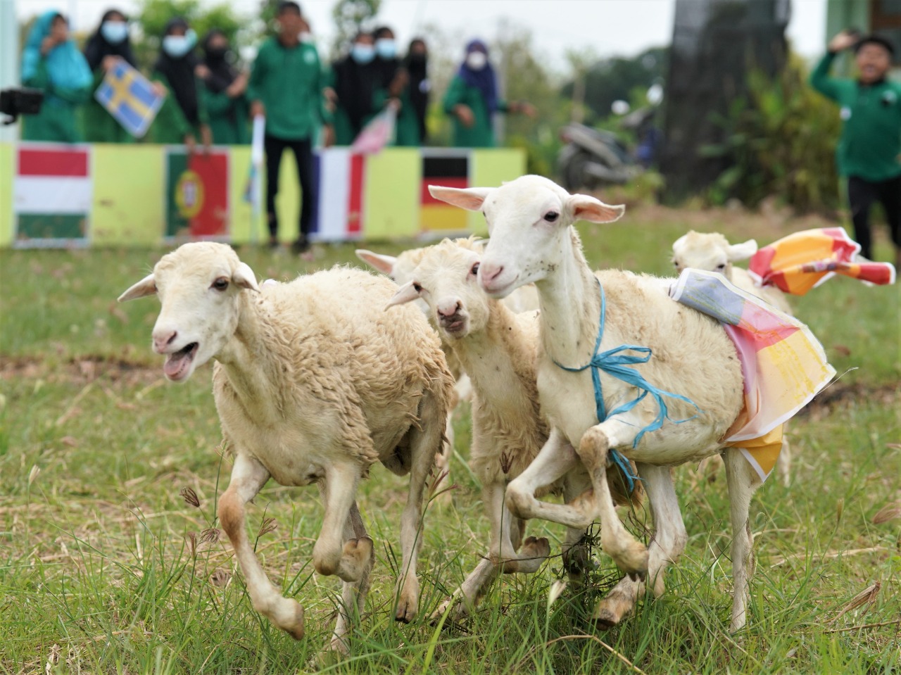 Suasana balap kambing di SMKM 5 Gresik. (Foto: ist)