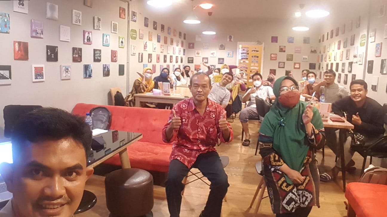Sekarang tidak lagi. Draf naskahnya dipresentasikan dulu secara lisan. Masing-masing penulis menjelaskan secara ringkas ide dan arah karya tulisnya, secara bergantian. Tempat presentasinya pun keren, di cafe Jalan Korea kawasan Jemursari, Kamis, 30 Desember 2021.