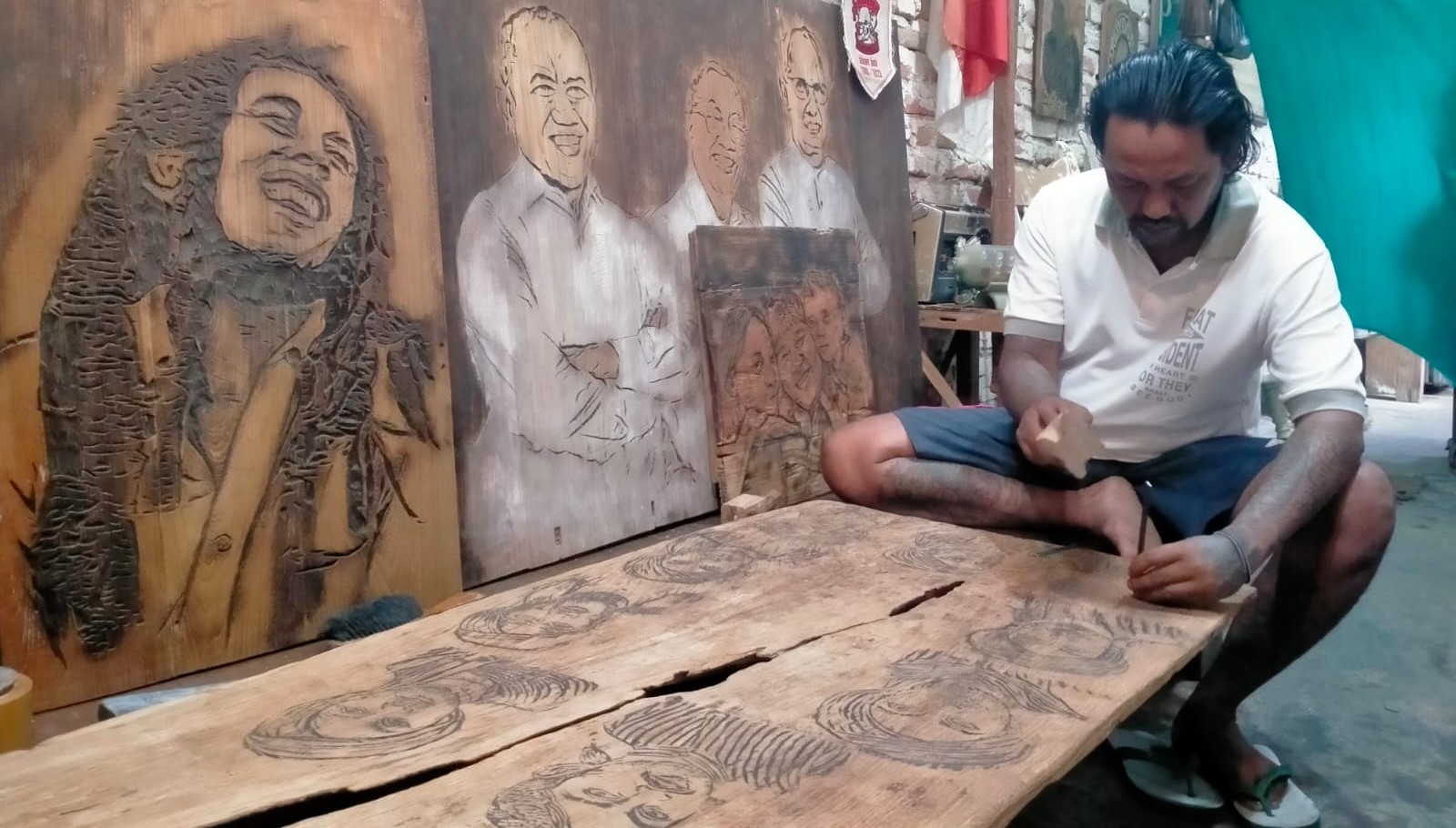 KEDIRI (RadarJatim.id) — Rumah Chukil Kayu, adalah rumah milik seorang pemuda berusia 42 tahun di Kelurahan Pare, Kecamatan Pare, Kabupaten Kediri, Jawa Timur. Di tempat itu, pemuda ini berhasil menyulap sebuah limbah kayu jati sebagai bahan dasar pembuatan seni lukisan ukir kayu.