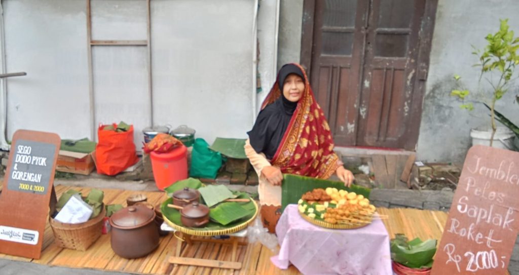 Ia menambahkan, jajan dan makanan yang dijual di antaranya: sego karak, godho tempe, sego pecel, sego dodo, lontong room, kowi, jongkong, pontir, jemblem, bantol, tetel, srawut, sumpil, awok sagu, ketan lamaran, ketan pleret, nogosari, bongko kacang ijo. Selain itu, juga ada kupat ketek, kue kentang, glali kemplong, glali ulur, kacang noga, es sinom, es temulawak, es trancam, es cao, pokak, es dawet, es bubur gempol, es serut, es lilin, dan stan dolanan jadul.