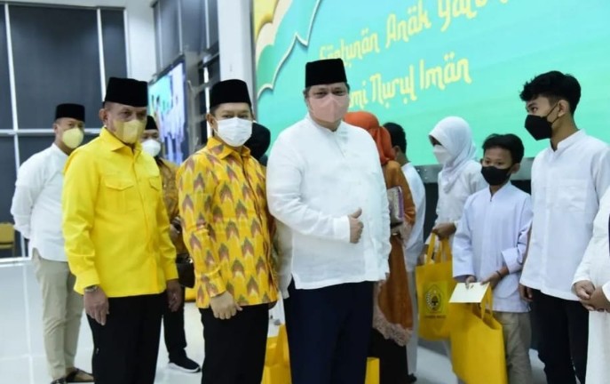 Dalam kegiatan santuan anak yatim piatu petang dihadiri Ketua Umum DPP Partai Golkar Airlangga Hartarto, Sekjen Partai Golkar Lodewijk F Paulus dan sejumlah petinggi partai lainnya. (HUM/RED)