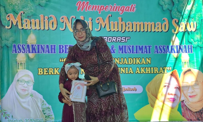 Julihah Indarti menjelaskan, peringatan Maulid Nabi Muhammad SAW kali ini kita lakukan kolaborasi As Sakinah Berkhotmil dengan Muslimat As Sakinah warga setempat. Bertamakan Sholawat Menjadikan Berkah dan Nikmat Dunia Akhirat.