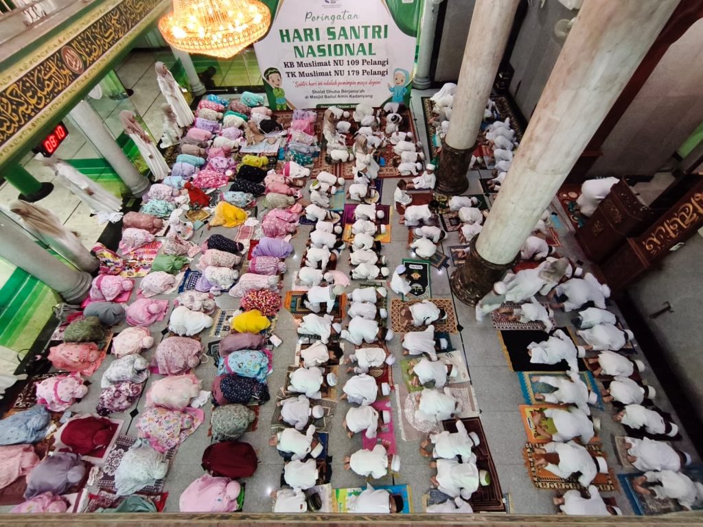 Beberapa agenda mereka lakukan dengan penuh ceriah dan khidmat. Diawali dengan praktik ibadah sholat Dhuha, ratusan bocah imut-imut itu didampingi 23 guru yang juga mengenakan busana Muslim/Muslimah warna putih. Seusai sholat Dhuha, mereka melantunkan wirid dan doa bersama. Suasana makin hidup ketika penampilan hadrah melengkapi peringatan Hari Santri Nasional itu.