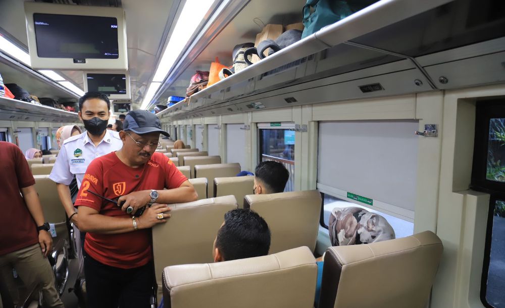 Wakil Walikota Surabaya Armuji yang meninjau stasiun gubeng menghimbau agar para pemudik memanfaatkan transportasi publik baik kereta api maupun kapal.