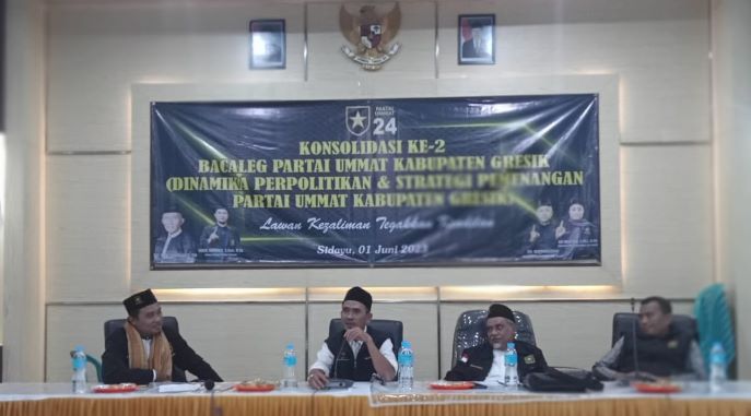 GRESIK (RadarJatim.id) – Partai Ummat menjadi partai pertama di Gresik yang melakukan komunikasi langsung secara intensif dengan Lembaga Hikmah dan Kebijakan Publik (LHKP) Pimpinan Daerah Muhammadiyah (PDM) Gresik, Jawa Timur, terkait pelaksanaan Pemilu 2024. Hal itu terungkap saat Ketua LHKP PDM Gresik Khamsun diundang sebagai pembicara dalam “Konsolidasi dan Pembekalan Bacaleg” partai itu yang dihelat Badan Pemenangan Pemilu Daerah (BPPD) DPD Partai Ummat Gresik, di Sidayu, Kamis (1/6/2023).