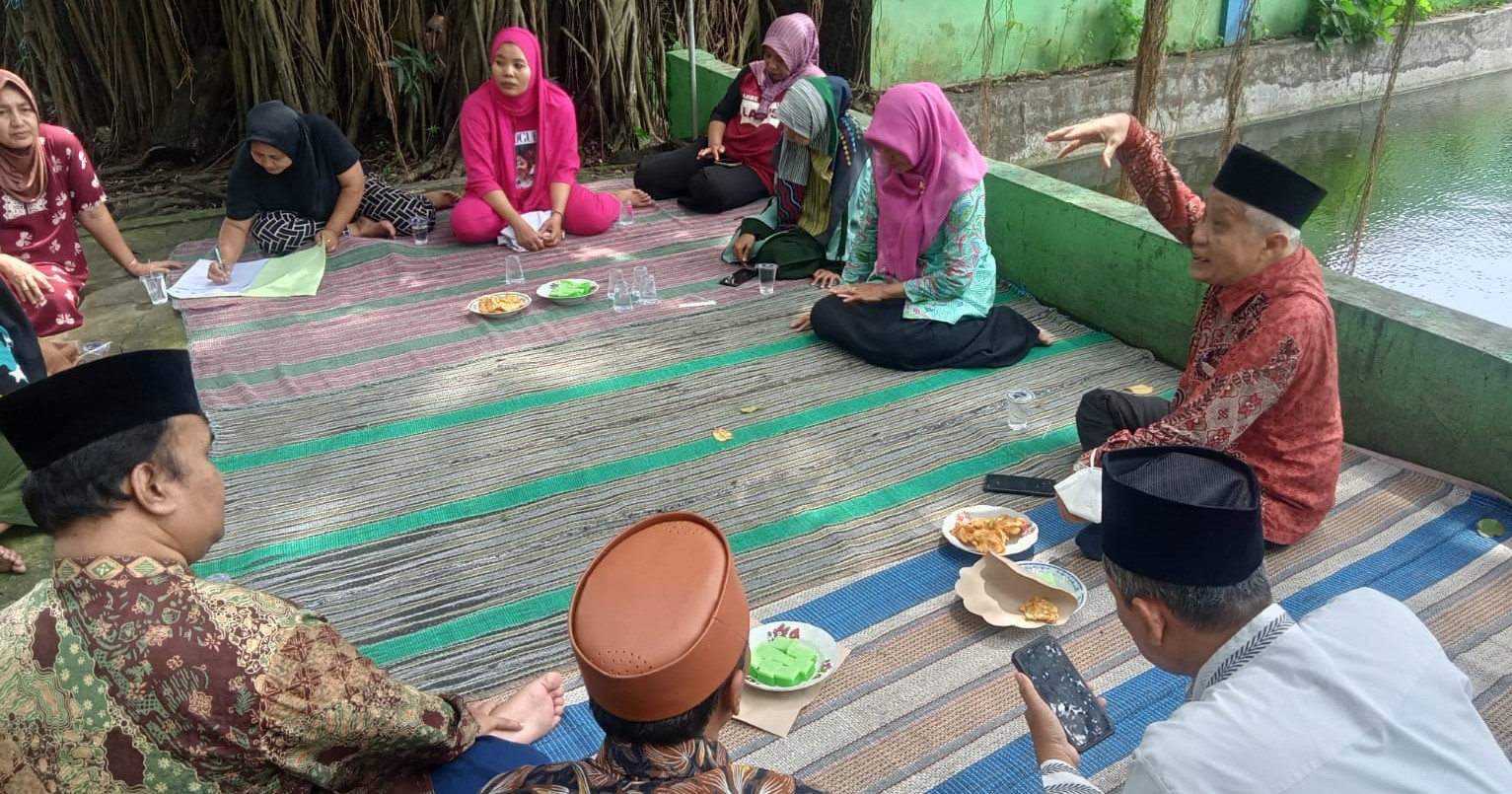 GRESIK (RadarJatim.id) — Belasan pedagang UMKM binaan Masjid Agung Maulana Malik Ibrahim Gresik (Masjid Agung Gresik) mengikui Ngaji Bisnis yang digelar di tepi sendang di kawasan masjid di Jalan Wahidin Sudirohusodo Gresik itu. Kamis (16/2/2023). Kajian yang diikuti ibu-ibu pedagang yang berjualan di area parkir Timur Masjid Agung itu menghadirkan Ustadz Awwaluddin, Ketua Penyuluh Kecamatan Kebomas, Gresik, sebagai pembicara.