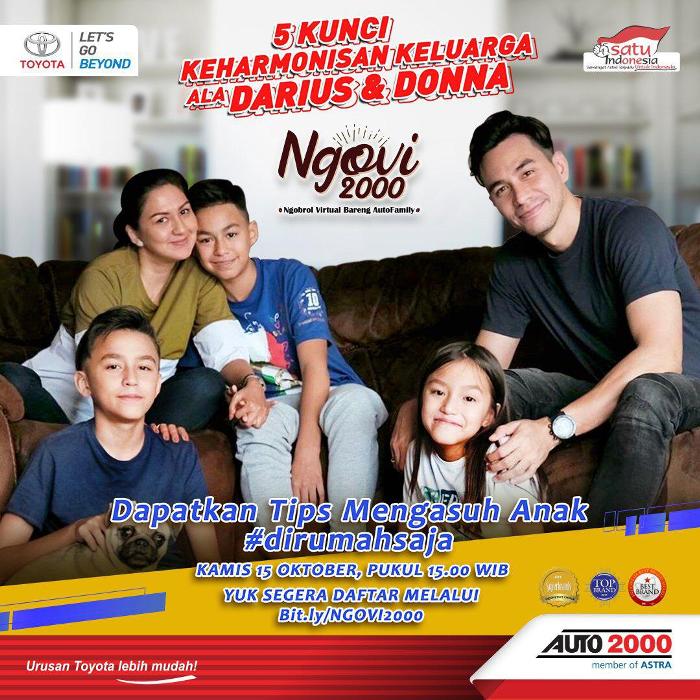 SURABAYA (RadarJatim.id) – Auto2000 menggelar Ngobrol Virtual Bareng Auto Family pada Kamis (15/10/2020) pukul 15.00 bersama keluarga Darius Sinathrya dan Donna Agnesia yang akan mengulas tema 5 Kunci Keharmonisan Keluarga.