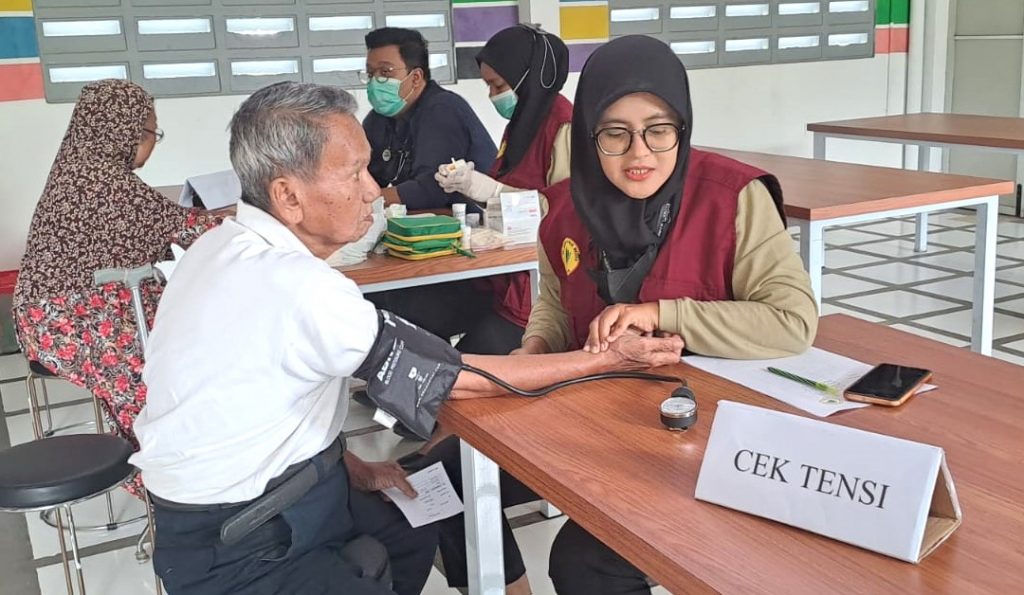 Warga sedang melakukan pemeriksaan kesehatan secara gratis di SMP Nurul Fikri Sidoarjo