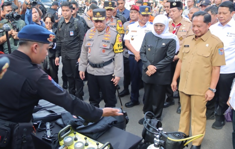 Turut hadir dalam apel gelar pasukan Operasi Ketupat 2025, yakni Mendagri Tito Karnavian, Gubernur Jatim, Khofifah Indar Parawansa, Wamenhub Suntana, Sesmenko Polkam Letjen TNI Mochammad Hasan yang mewakili Menko Polkam, Dirjen Sarana Kemenhub Amirullah, Kepala BNPT Komjen Eddy Hartono, Kakanwil kemenag Jatim Akhmad Sruji Bahtiar, Irjen Kemendag Putu Jayan Danu Putra, hingga Kepala BMKG Dwikorita Karnawati. (RJ)