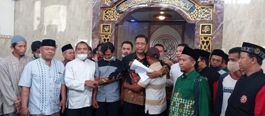 Tim advokat dan penasihat hukum PWM Jatim saat tabayyun dengan warga yang sebelumnya merusak papan nama. (Foto: M. Husen)