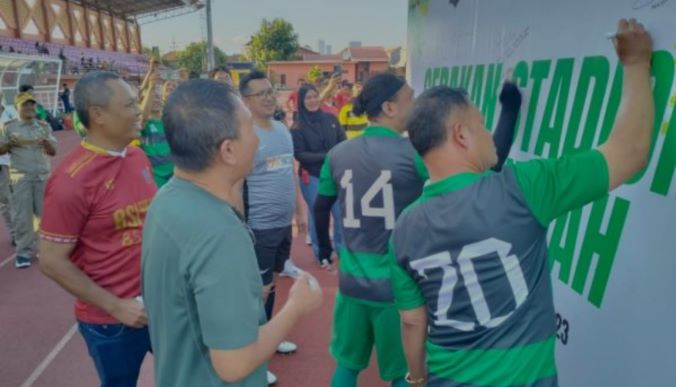 SURABAYA (RadarJatim.id) — PT Pegadaian menggaungkan kampanye gerakan Stadion Bersih dan Indah di Surabaya. Gerakan ini dilakukan, bekerja sama dengan Pemkot Surabaya dan Presidium National Suporter Sepakbola Indonesia (PN-SSI).