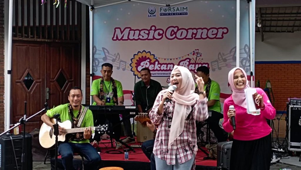 Wali murid SAIM unjuk suara di panggung Music Corner, meramaikan Pekan Raya 2025.
