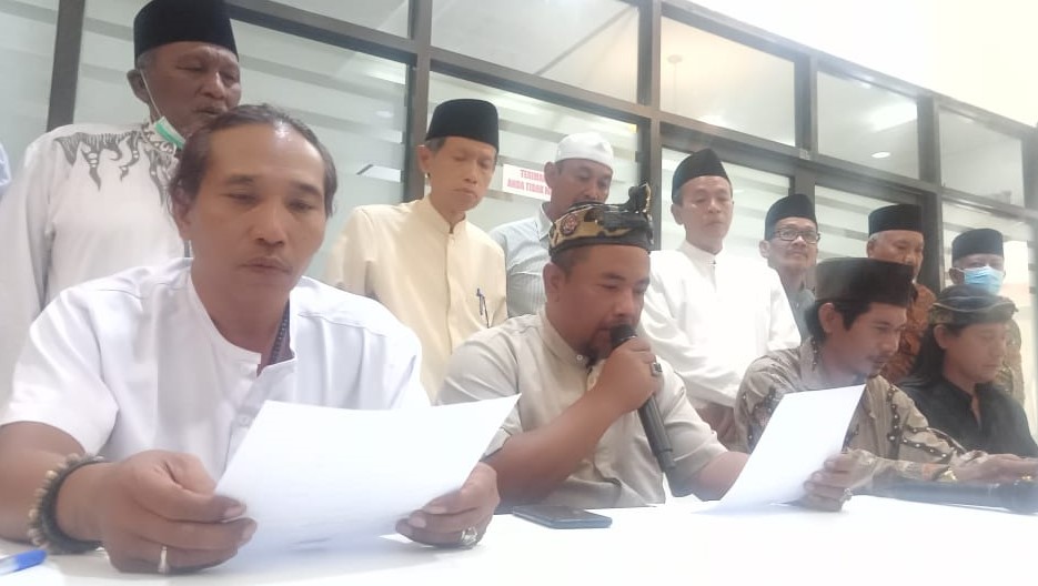 Nur Hudi Didin Arianto (kiri) saat menyampaikan tobat dan permintaan maaf kepada masyarakat Gresik di kantor MUI Gresik beberapa waktu lalu. (Suhartoko)