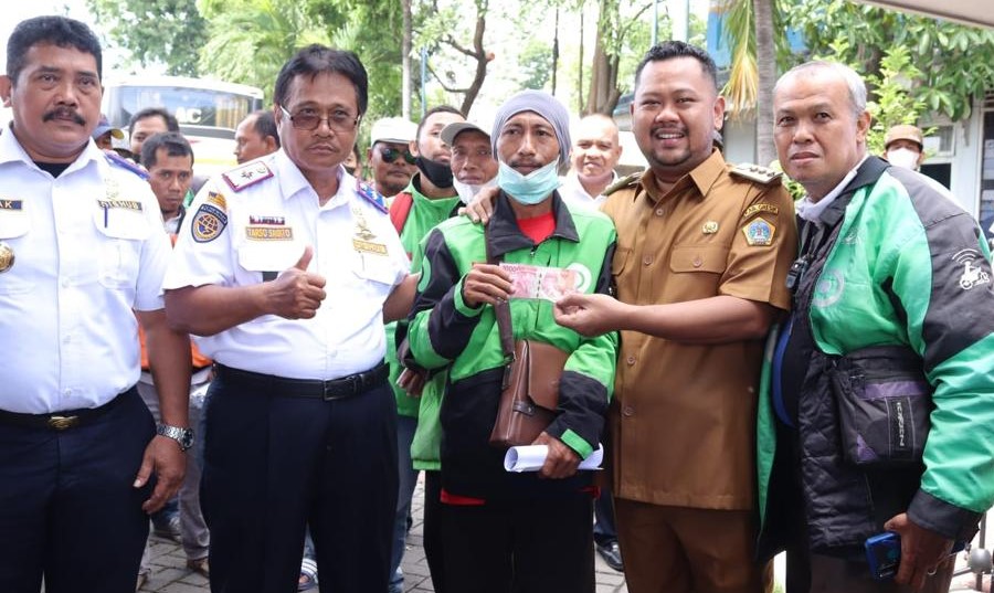 GRESIK (RadarJatim.id) — Ratusan insan transportasi, terdiri atas tukang ojek dan sopir angkutan kota/angkutan pedesaan (angkot/angdes) menerima bantuan sosial (Bansos) dan voucher BBM dari Pemerintah Kabupaten (Pemkab) Gresik. Selain itu, Pemkap Gresik juga menyiapkan subsidi tiket kapal ke Bawean kepada para penumpang selama 3 bulan.