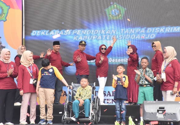 Moment tersebut digunakan untuk mendeklarasikan Sekolah Tanpa Diskriminasi. Deklarasi dibacakan langsung oleh Wakil Bupati Sidoarjo Hj. Mimik Idayana. Isinya berkomitmen untuk mewujudkan pendidikan yang adil dan inklusif serta ramah bagi semua.