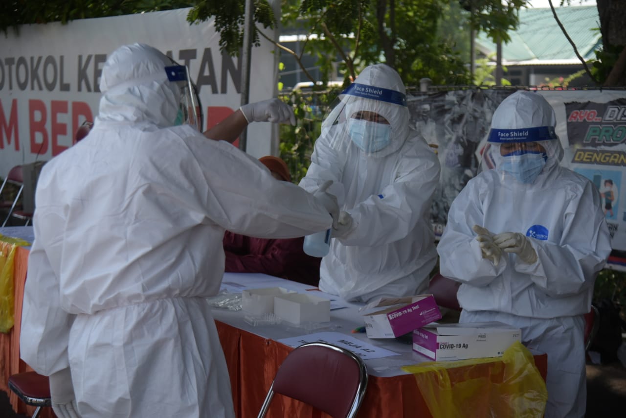 Sejak pukul 06.00 Wib, para nakes sudah bertugas dan wajib mengenakan Alat Pelindung Diri (APD). Mereka bertugas dalam pemeriksaan rapid antigen, bagi masyarakat yang hendak masuk ke Kota Surabaya.