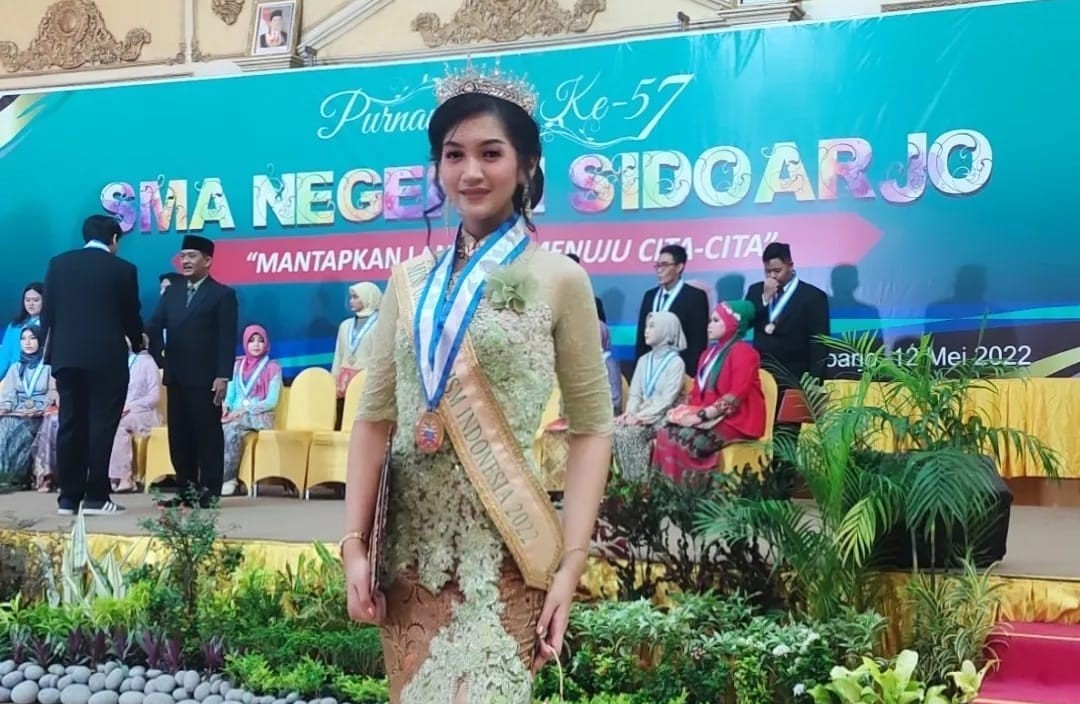 SIDOARJO (Radarjatim.id) Setelah berhasil menembus jalur Golden Ticket Univeritas Airlangga (Unair) Surabaya. Putri Kebudayaan Sidoarjo/Miss Kebudayaan Sidoarjo 2021 berpesan, ’Jangan pernah melupakan SMA. Jangan pernah melupakan jasa-jasa para guru’.
