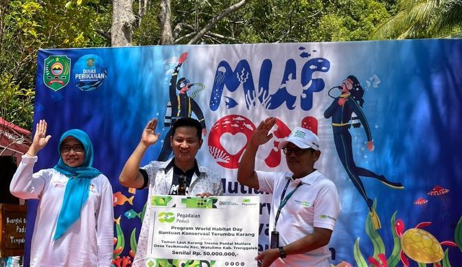 Peresmian Taman Laut Karang Tresno Trenggalek, Pegadaian Sumbang 200 Terumbu Karang