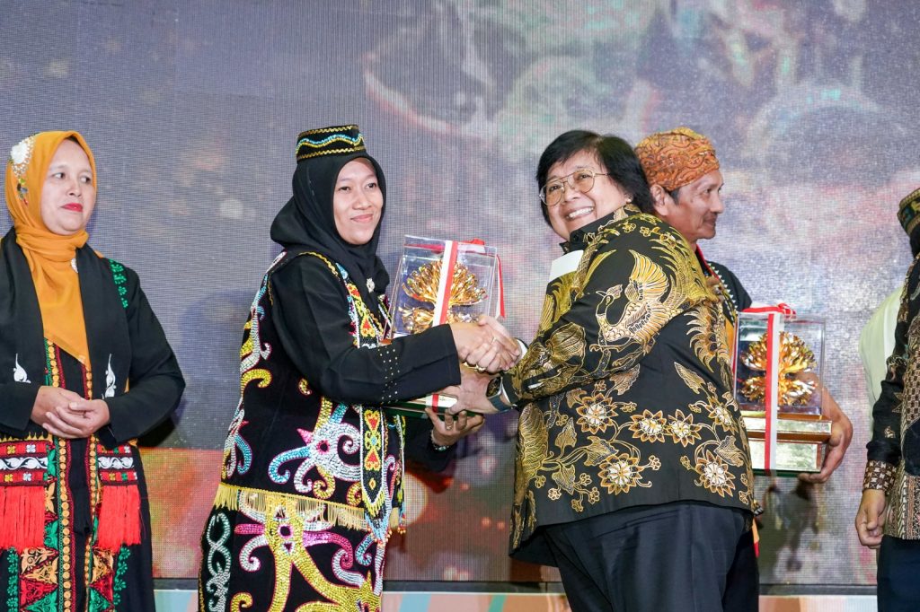 Menteri LHK, Siti Nurbaya memberikan langsung penghargaan Kalpataru secara langsung kepada tokoh terpilih di Manggala Wanabakti, Jakarta, Senin (5/6/2023). Usai memberikan penghargaan, Menteri Siti menyampaikan bahwa keberadaan Penghargaan Kalpataru sangat penting.