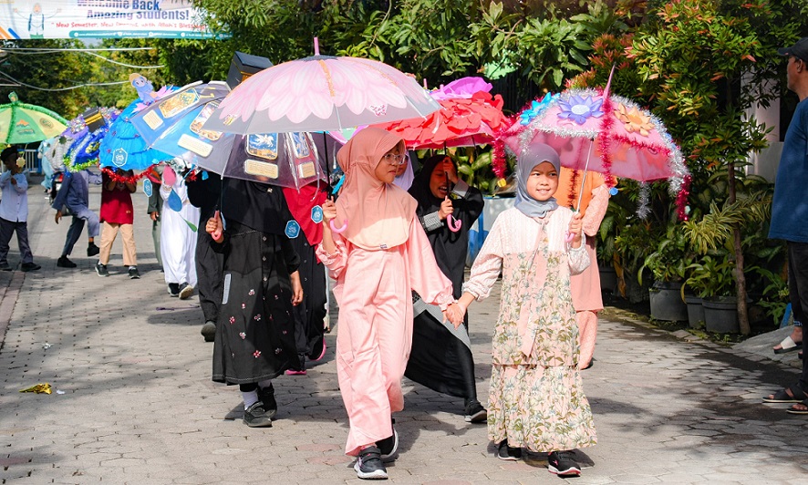 Mereka merayakan dengan sangat unik, puncak kemeriahan dimulai dengan pawai payung hias. Setiap siswa membawa payung yang telah didekorasi sedemikian rupa dari rumah. Ada payung bertema kaligrafi, bunga-bunga, hingga miniatur Ka’bah, yang dilaksanakan, pada (15/1/2025) pagi.