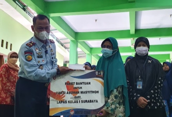 Jajaran Lapas Surabaya diterima oleh pengasuh panti asuhan Masyitoh, Taslimah. Bantuan berupa sembako diberikan langsung kepada anak-anak dan pengasuh panti. Sedangkan bantuan berupa modal usaha diberikan secara simbolis kepada pemilik warung kopi di depan lapas, Putro Kencono.