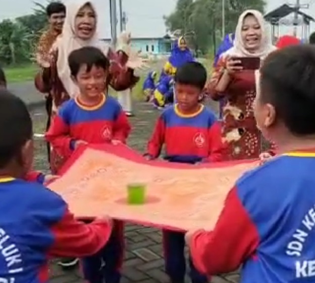 Kepala SDN Kedungpeluk I Candi Sidoarjo Pudji Rahayu, S.Si menuturkan itulah cara kita menanamkan kekompakan bersama, bergotong-royong memindahkan air dalam botol dan spon yang berada di tengah-tengah kain/taplak meja dengan cara dipegang ujung-ujungnya.