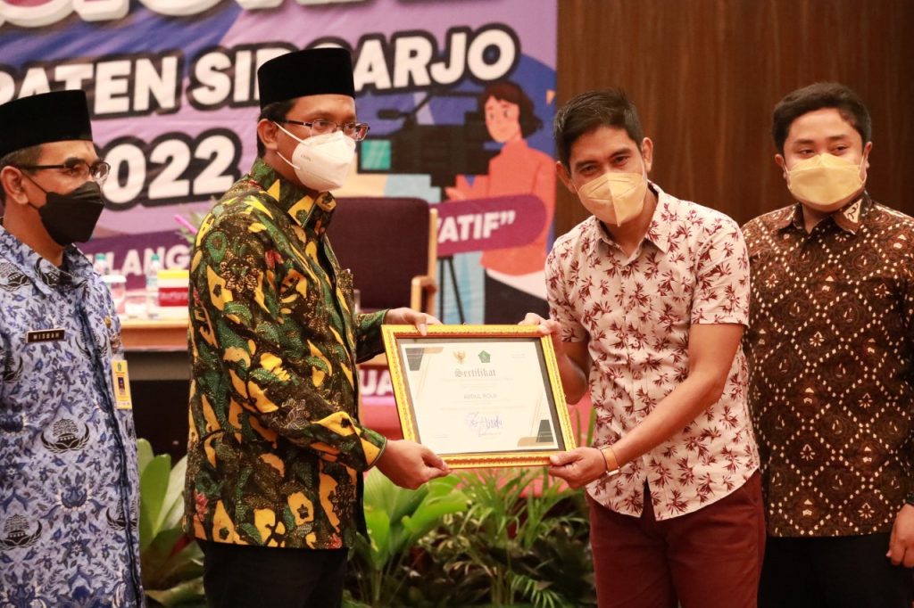 Pada kesempatan itu, Bupati Sidoarjo memberikan penghargaan kepada sejumlah awak media yang dinilai berdedikasi tinggi, berkontribusi dalam pembangunan Kabupaten Sidoarjo.
