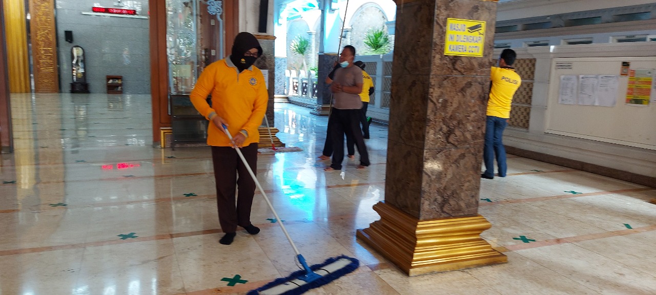 “Para personel Polsek Gedangan membersihkan lingkungan masjid, mulai dari halaman, teras, toilet dan tempat wudhu,” katanya.