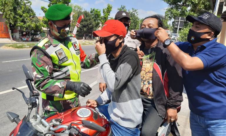 LAMONGAN (radarjatim.id) Upaya penerapan new normal masih terus digencarkan di wilayah tugas Kodim 0812/Lamongan. Berbagai sanksi, hingga teguran pun tak segan-segan diberikan oleh petugas protokol kesehatan yang terdiri dari aparat TNI, Polri dan Pemda setempat.