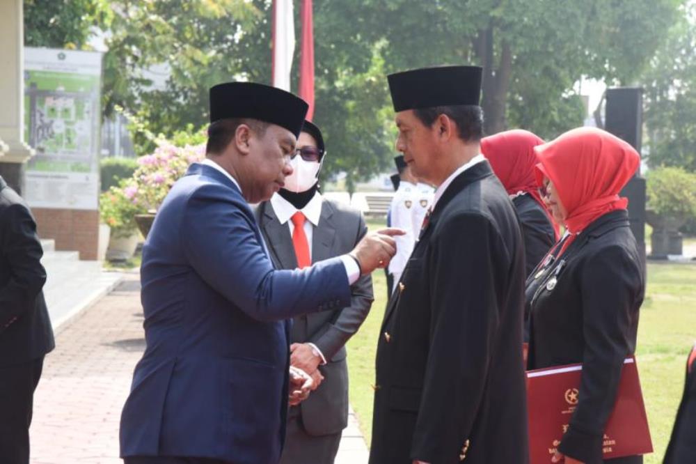 SIDOARJO (RadarJatim.id) Pjs Bupati Sidoarjo Muhammad Isa Anshori memimpin upacara bendera memperingati Hari Pahlawan yang dilaksanakan Pemkab Sidoarjo di Alun-alun Sidoarjo, Minggu, (10/11/2024). Dalam upacara tersebut, juga ada penganugerahan Satyalencana Karya Satya dari Presiden RI yang diterima Pegawai Negeri Sipil/PNS Sidoarjo.
