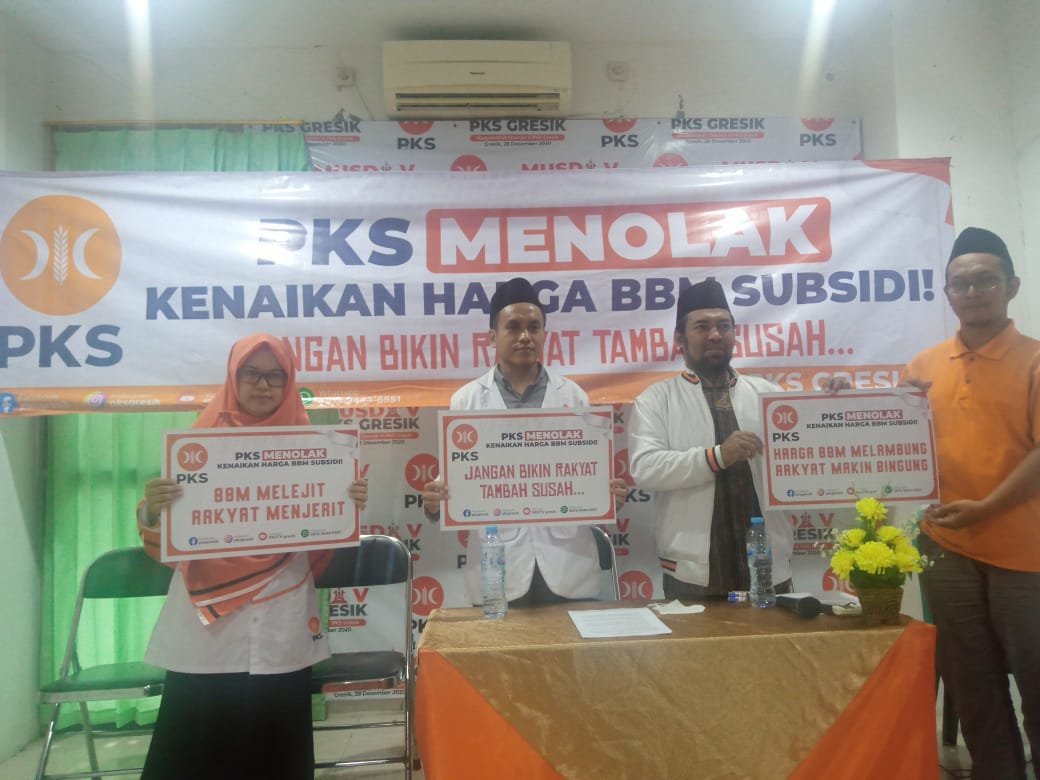 GRESIK (RadarJatim.id) — Dewan Pimpinan Daerah (DPD) Partai Keadilan Sejahtera (PKS) Gresik kembali menegaskan sikap resmi partainya yang menolak kenaikan harga bahan bakar minyak (BBM) bersubsidi yang telah ditetapkan pemerintah beberapa hari lalu. Penegasan kembali sikap itu merupakan tindak lanjut sikap keras Fraksi PKS yang menolak kenaikan harga BBM yang dikuatkan dengan aksi walk out (WO) dalam sidang paripurna di DPR RI di Jakarta, Selasa (6/9/2022).