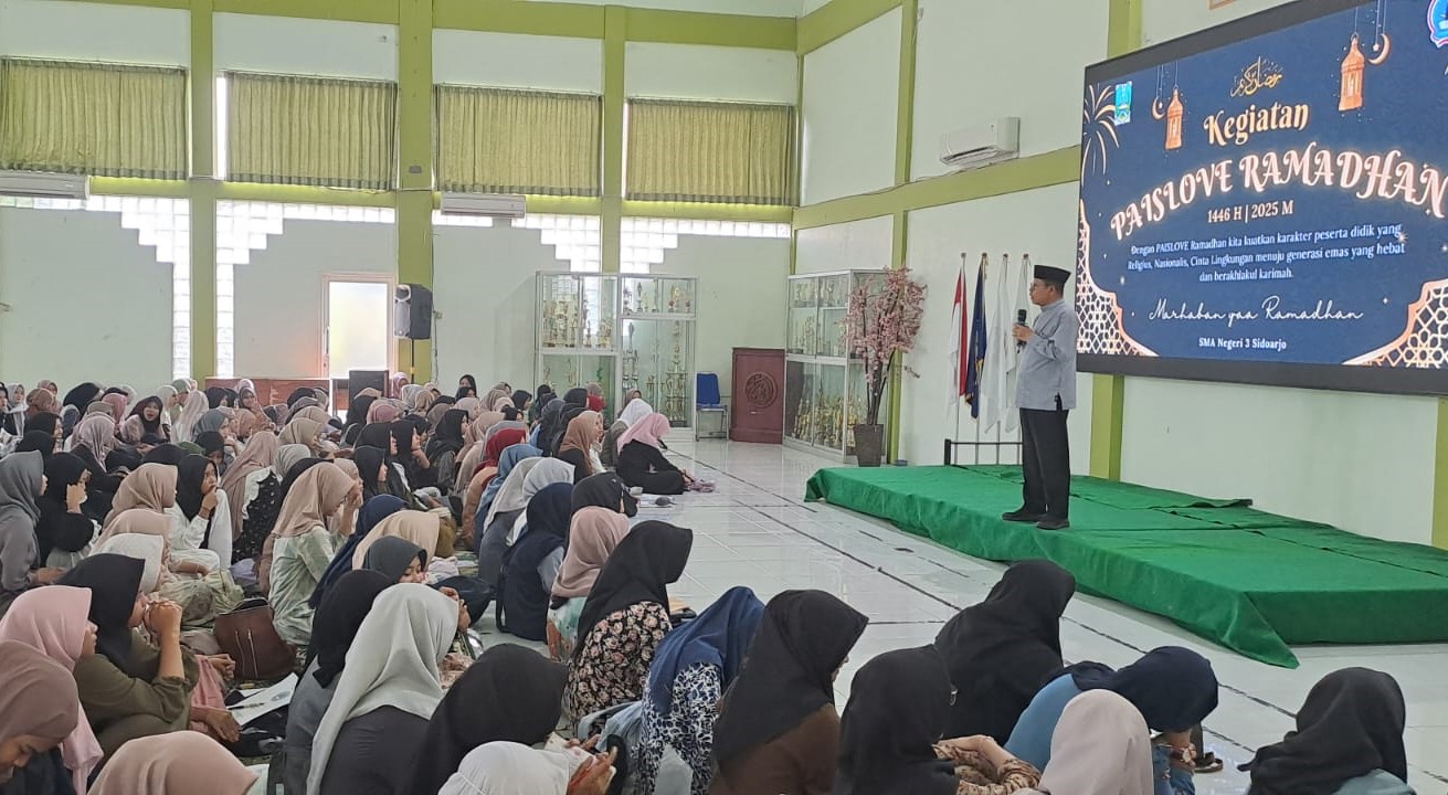 Prosesi pelaksanaan Pondok Ramadan 1446 H dibuka langsung oleh Kepala SMA Negeri 3 Sidoarjo Lamiran, S.Pd M.Pd didampingi Waka Kesiswaan Bambang Wahyudi, M.Pd dan Waka Bidang Humas Dr. Sri Wulandari, M.Pd.I pada (6/3/2025) di Aula SMA Negeri 3 Sidoarjo Jl. Dr. Wahidin, Sidoarjo.