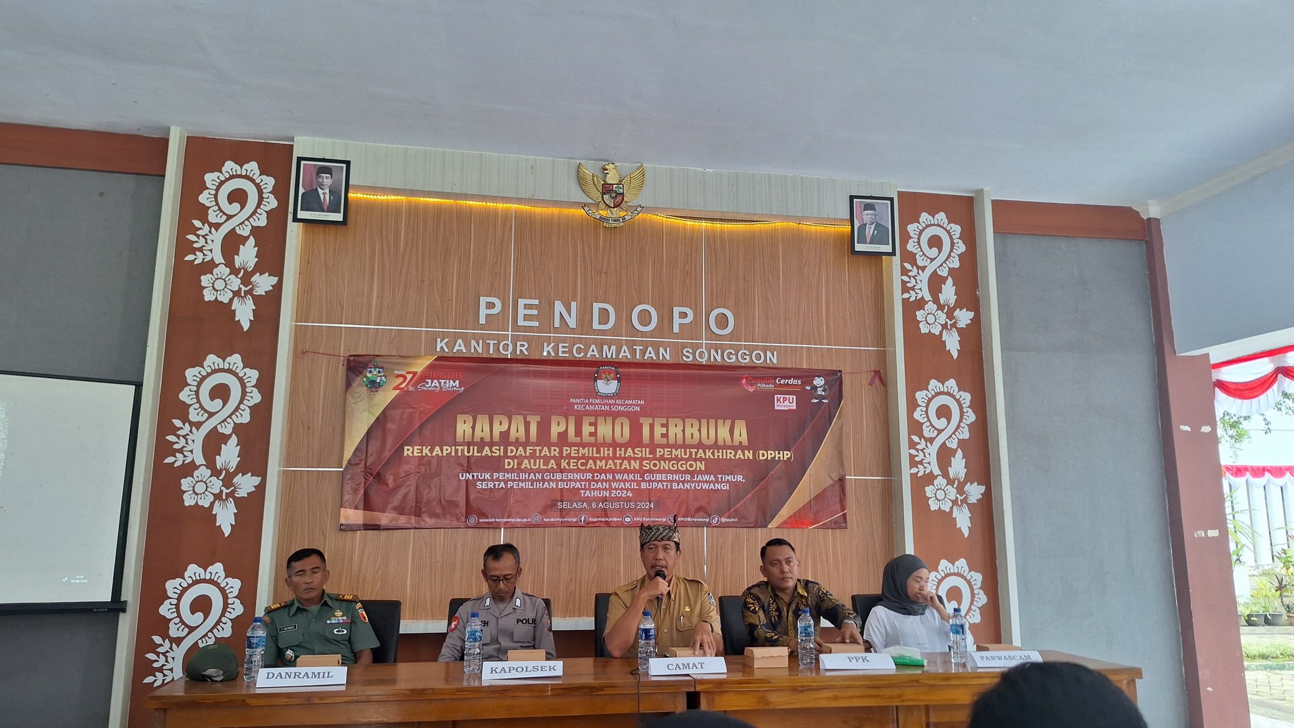 Dalam rapat pleno tingkat kecamatan tersebut dihadiri oleh Camat Songgon, Danramil, Kapolsek, Panitia pengawas pemilu kecamatan (Panwascam) beserta Panitia pengawas pemilu Kelurahan/Desa (PKD), PPK beserta anggota PPS, serta para pengurus partai politik setempat.