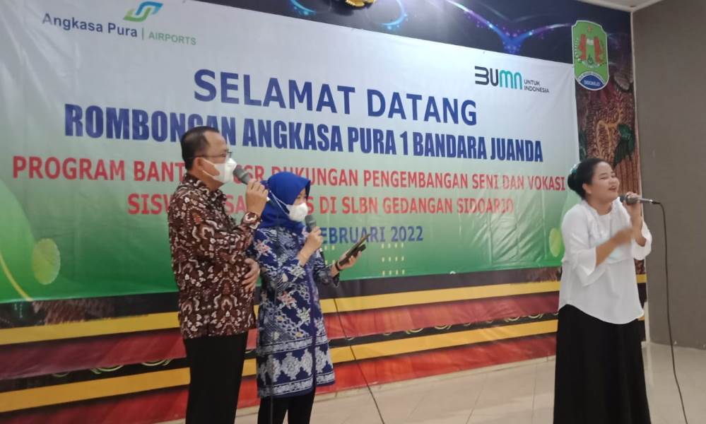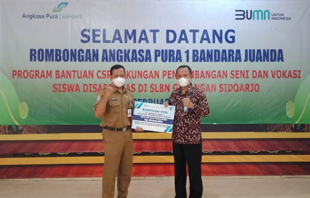 Tanpa diduga sekalipun, ternyata PT Angkasa Pura I Bandara Internasional Juara memberikan bantuan satu set alat musik band. Prosesi penyerahaannya dilakukan langsung oleh GM PT Angkasa Pura I Bandara Internasional Juanda Laksma TNI Sisyani Jaffar secara simbolis kepada Kepala UPT SLB Negeri Gedangan Sidoarjo, Miseri, M.Pd pada (15/2/2022) tadi pagi.