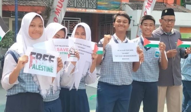 GRESIK (RadarJatim.id) — SMP Muhammadiyah 1 (Spemutu) Gresik, Jawa Timur menggelar aksi Bela Palestina dan mengutuk penjajahan yang dilakukan Israel terhadap Pelestina. Selain orasi, aksi juga didukung pembacaan puisi langsung oleh Kepala Spemutu, Sulistyaningsih MPd.